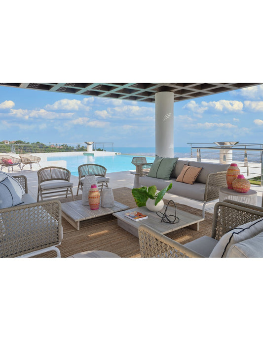 Sofá de exterior de aluminio y cuerda beige
