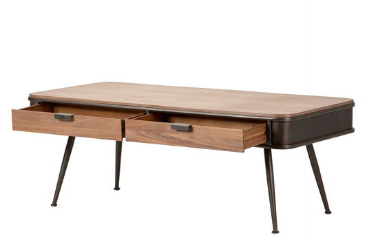 Mesa Centro Madera Metal Marron Negro 140X71X54 Cm