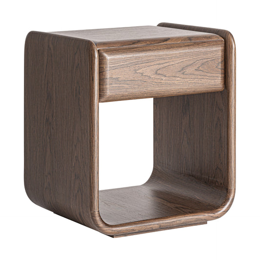 Pronto disponibleMesita de Noche Norvik en madera de olmo marrón – Estilo Contemporáneo