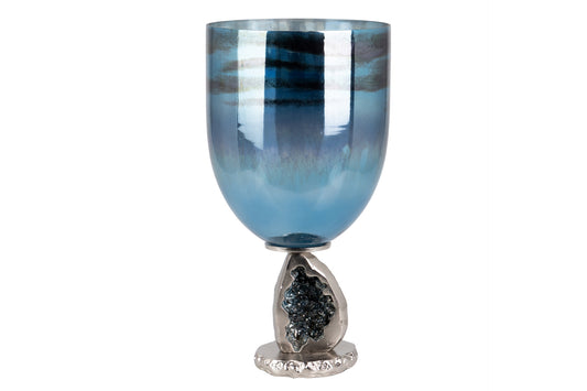 Portavelas Cristal / Aluminio Nickel 23x23x44 Cm