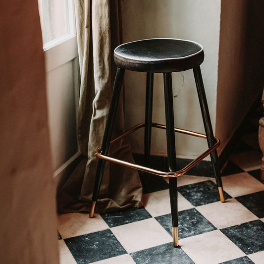Taburete Alto Estilo Vintage con Detalles en Latón