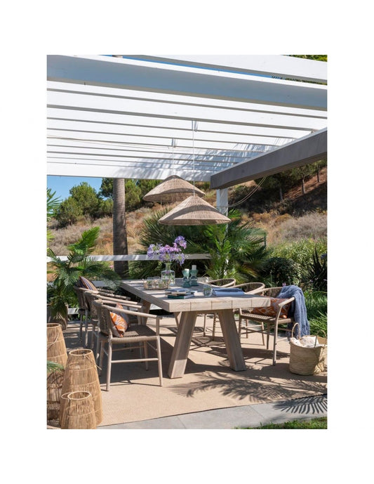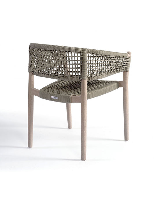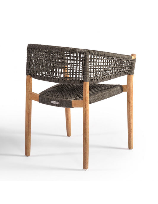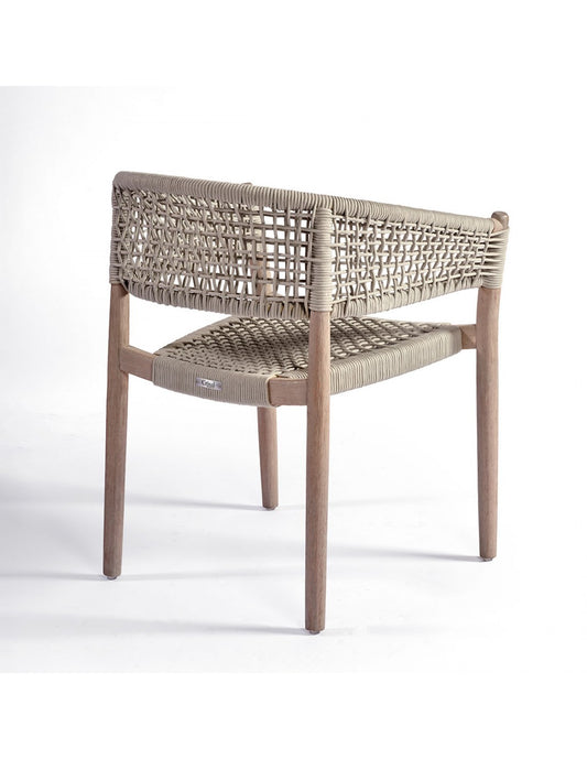 Teak and camel rope dining armchair