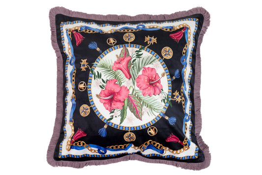 Velvet Cushion Feather Filling Fringe 45X13X45 Cm