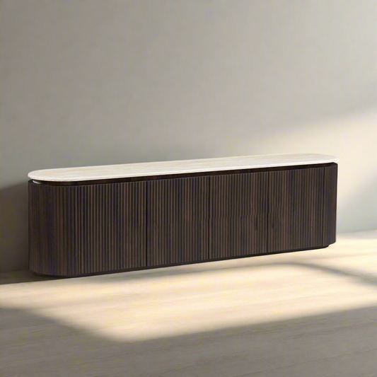 Available soon.Mueble Tv Byremo en madera de olmo marrón – Estilo Contemporáneo