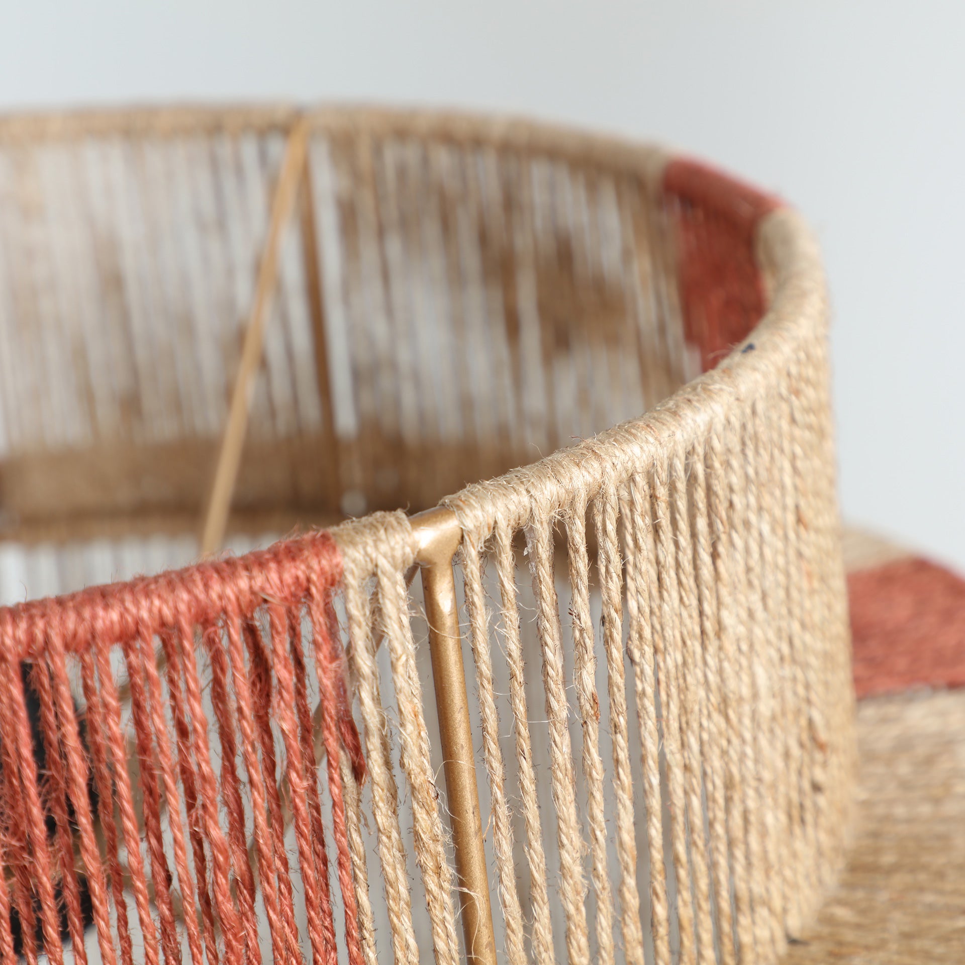 Lámpara de colgar Izamal de estilo boho, fabricado en yute en color marrón claro, combinado con hierro en color marrón en color rojo.