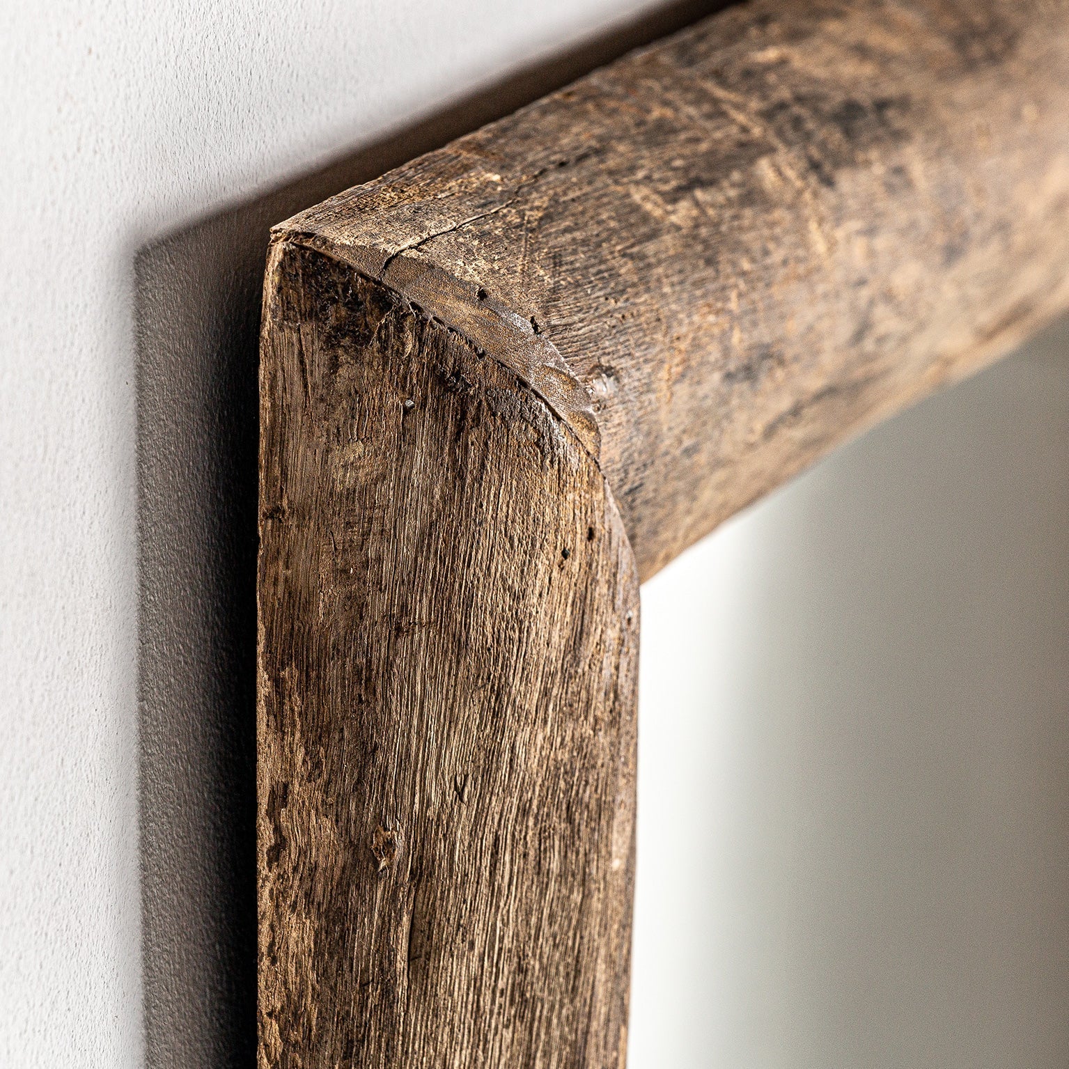 Espejo Badai, En Color Natural Envejecido, De Estilo Étnico. Fabricado En Madera De Mango Reciclada, Combinado Con Espejo.