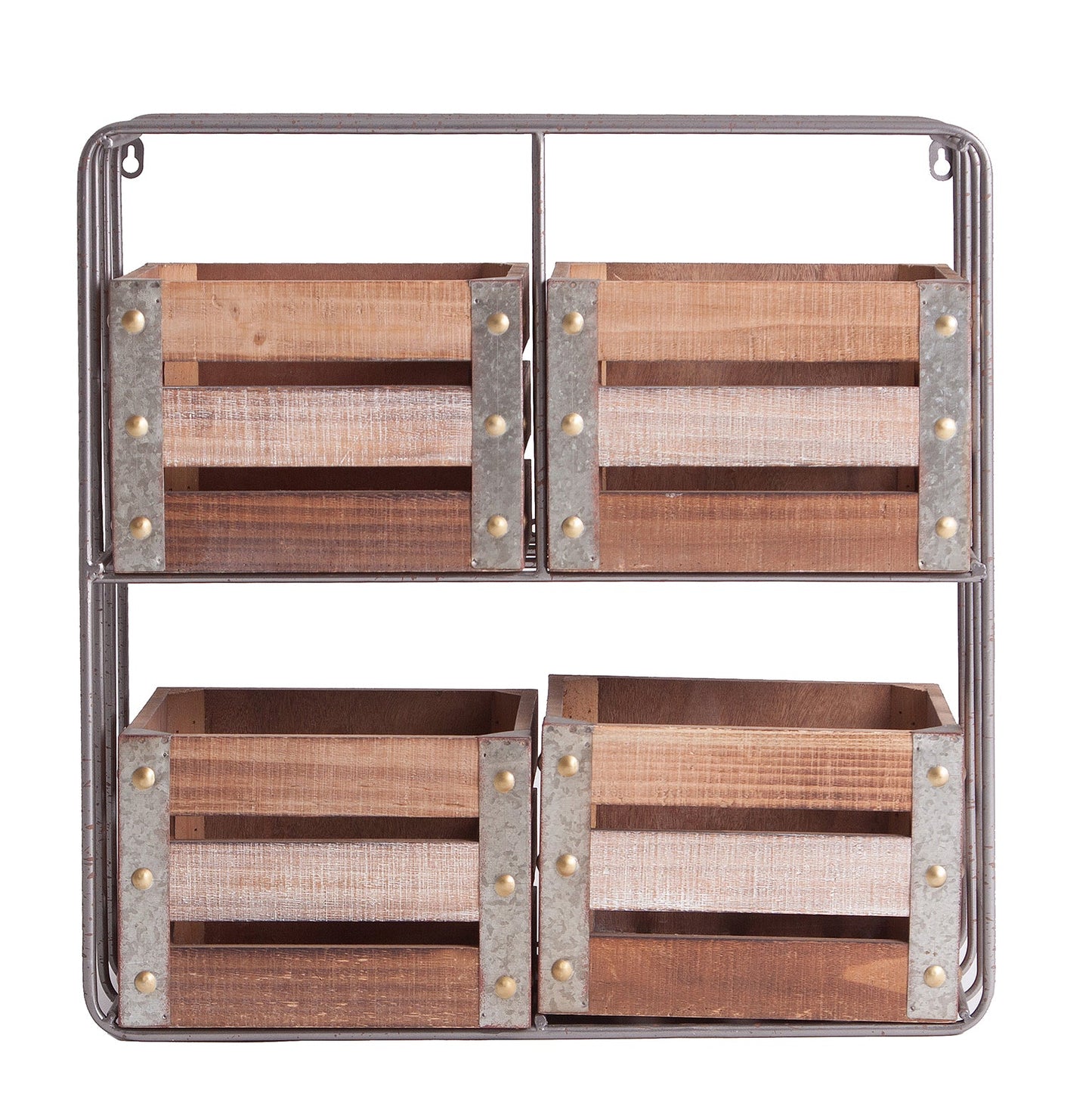 Estanteria Rectangular Yeovil, En Color Marrón Envejecido, De Estilo Industrial. Fabricado En Madera Dm, Combinado Con Hierro.