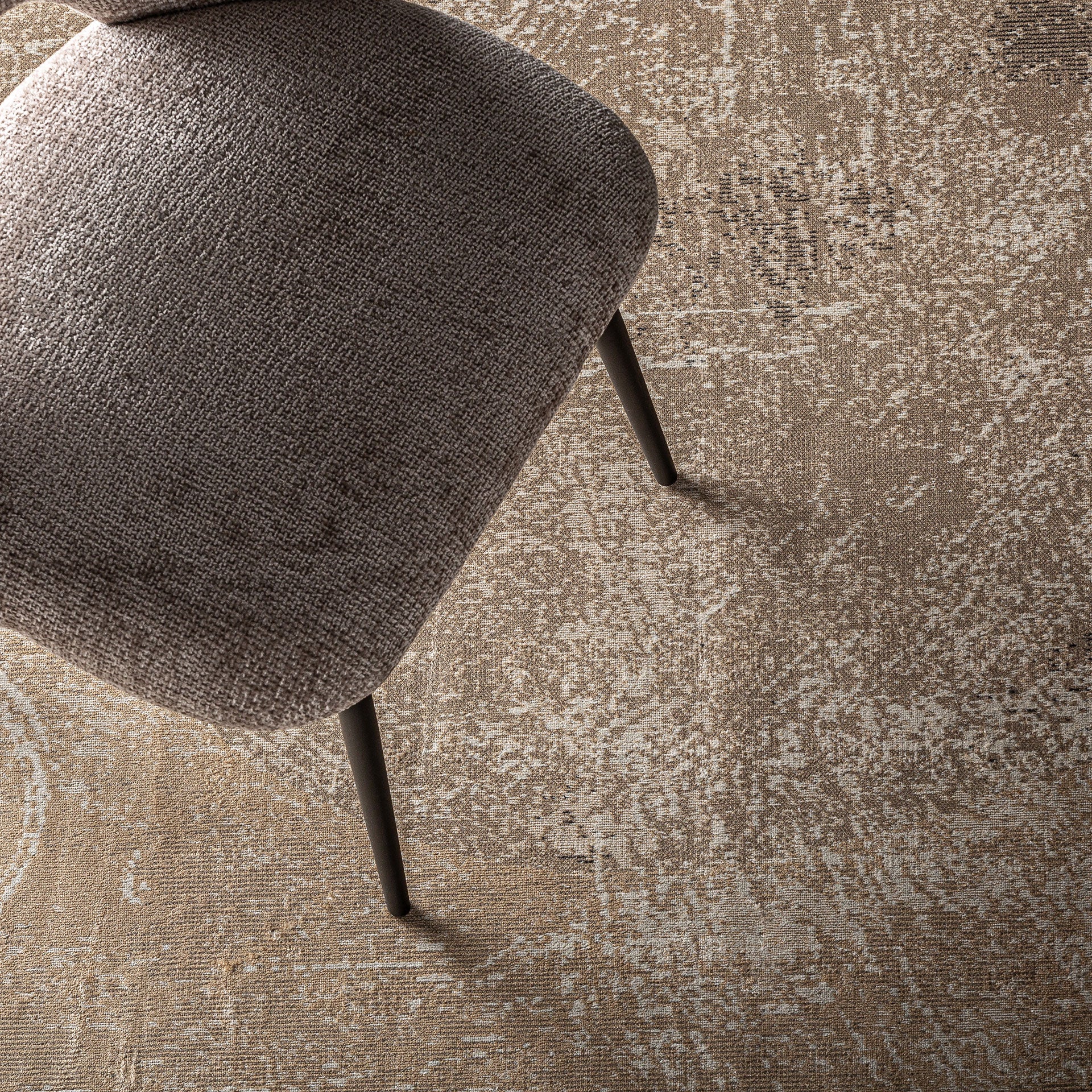 Alfombra Nadjela de estilo clásico, fabricado en viscosa en color beige.