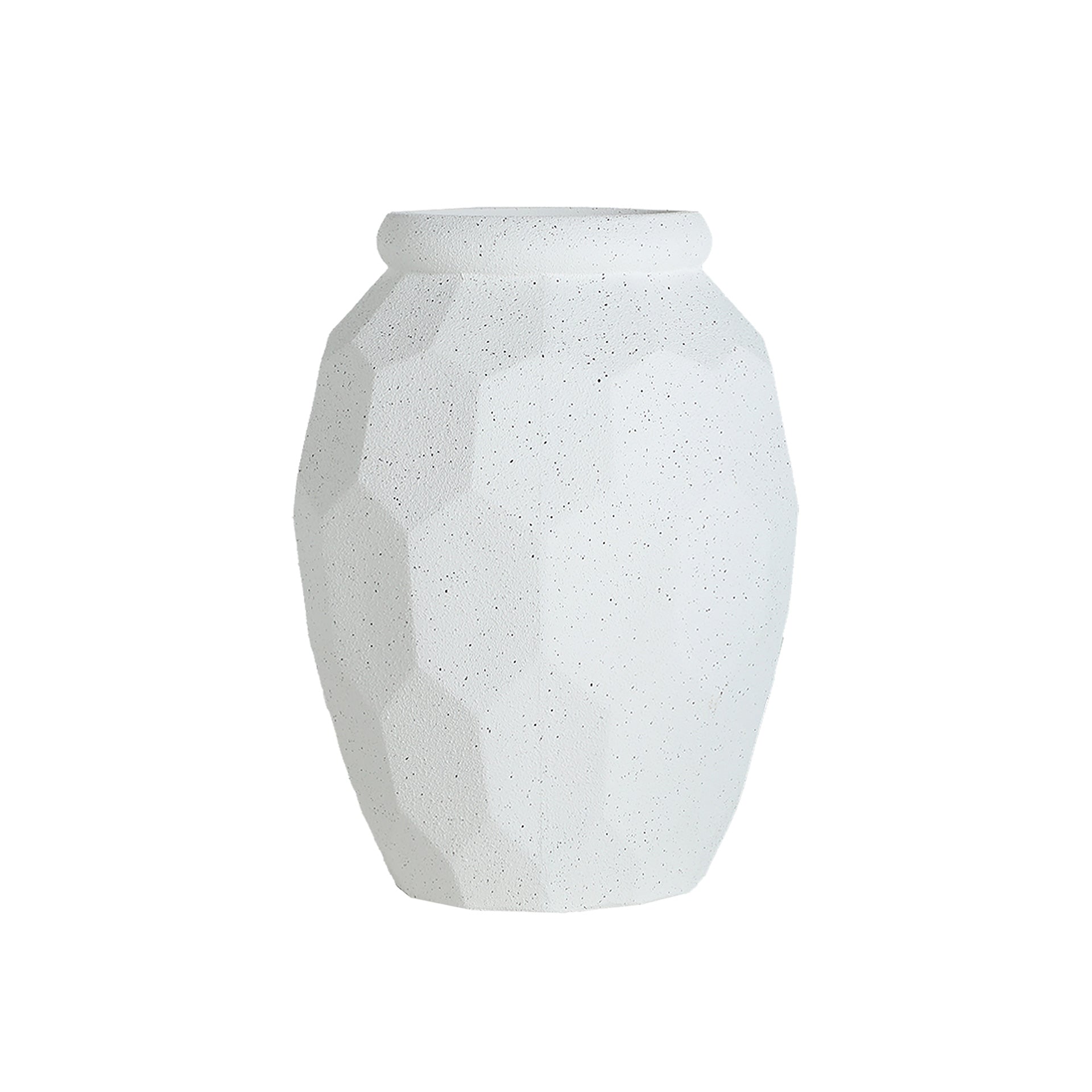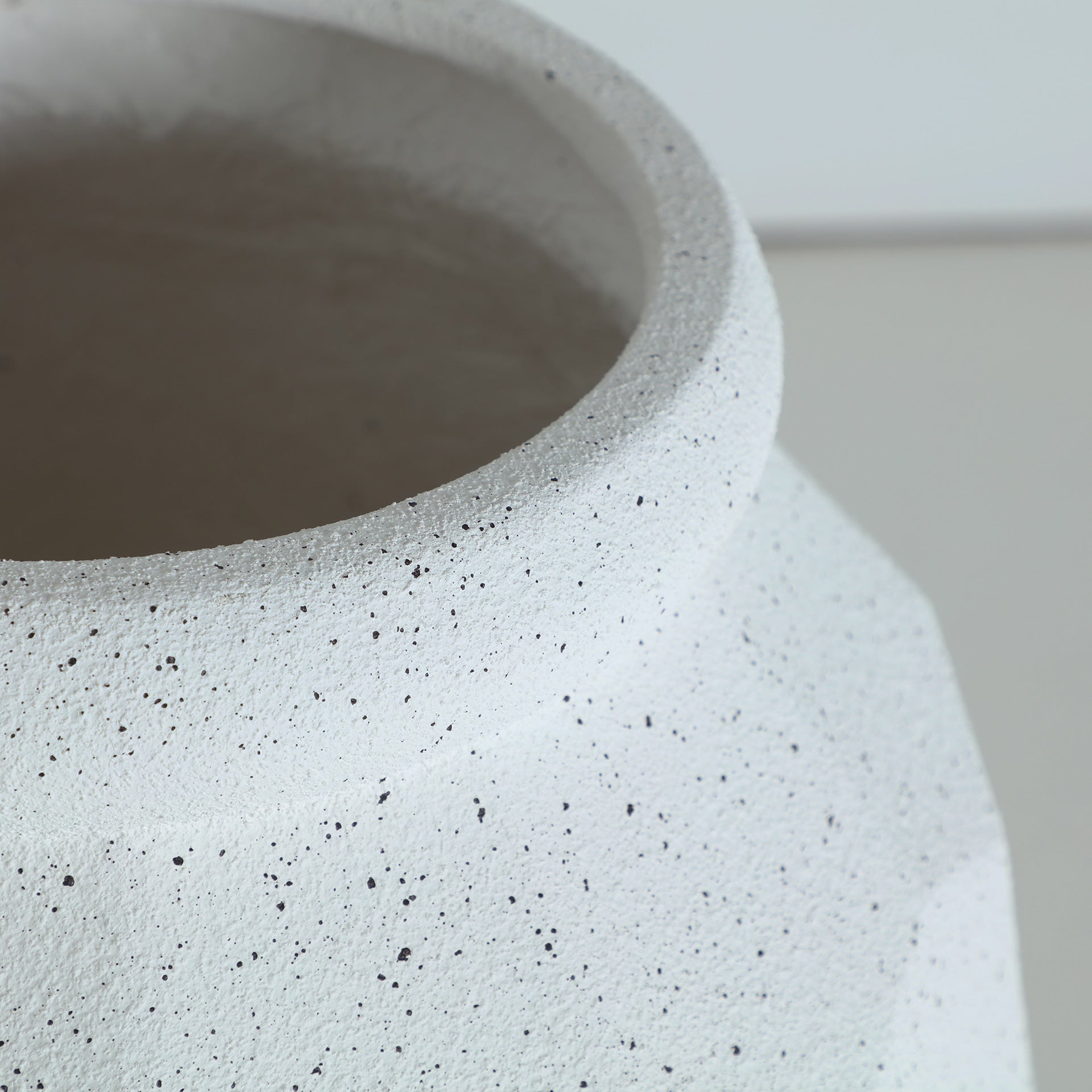 Macetero, fabricado en poliresina en color blanco roto.