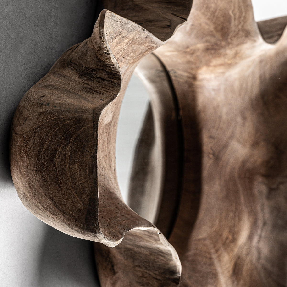 Espejo Urama, En Color Natural Envejecido, De Estilo Étnico. Fabricado En Madera Suar, Combinado Con Espejo.