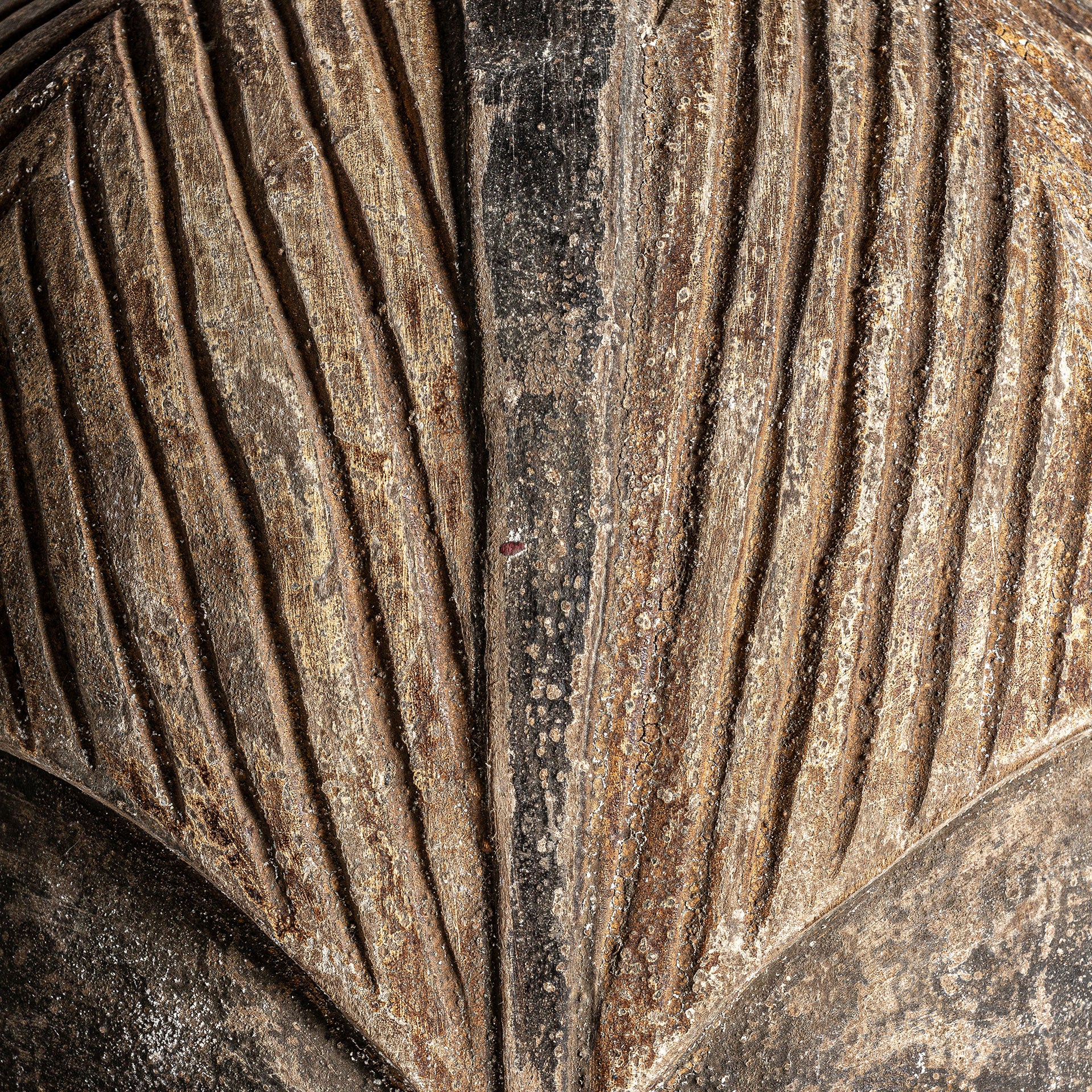 Figura humber, de estilo étnico. Fabricado en madera de mango, en color marrón envejecido, combinado con hierro, en color negro.